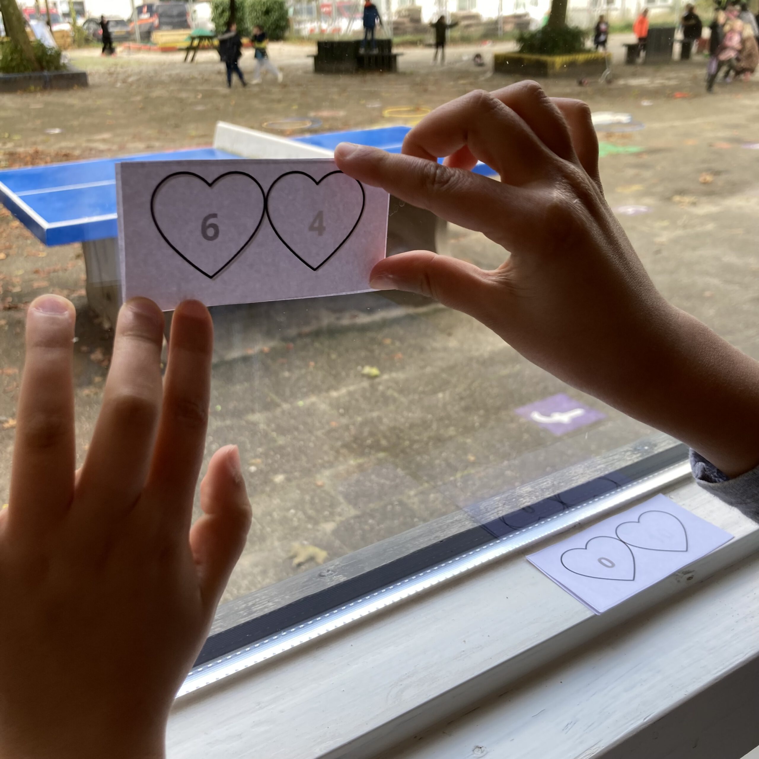 En natuurlijk rennen we heel vaak over het plein om de verliefde getallen te verstoppen en weer samen te voegen.