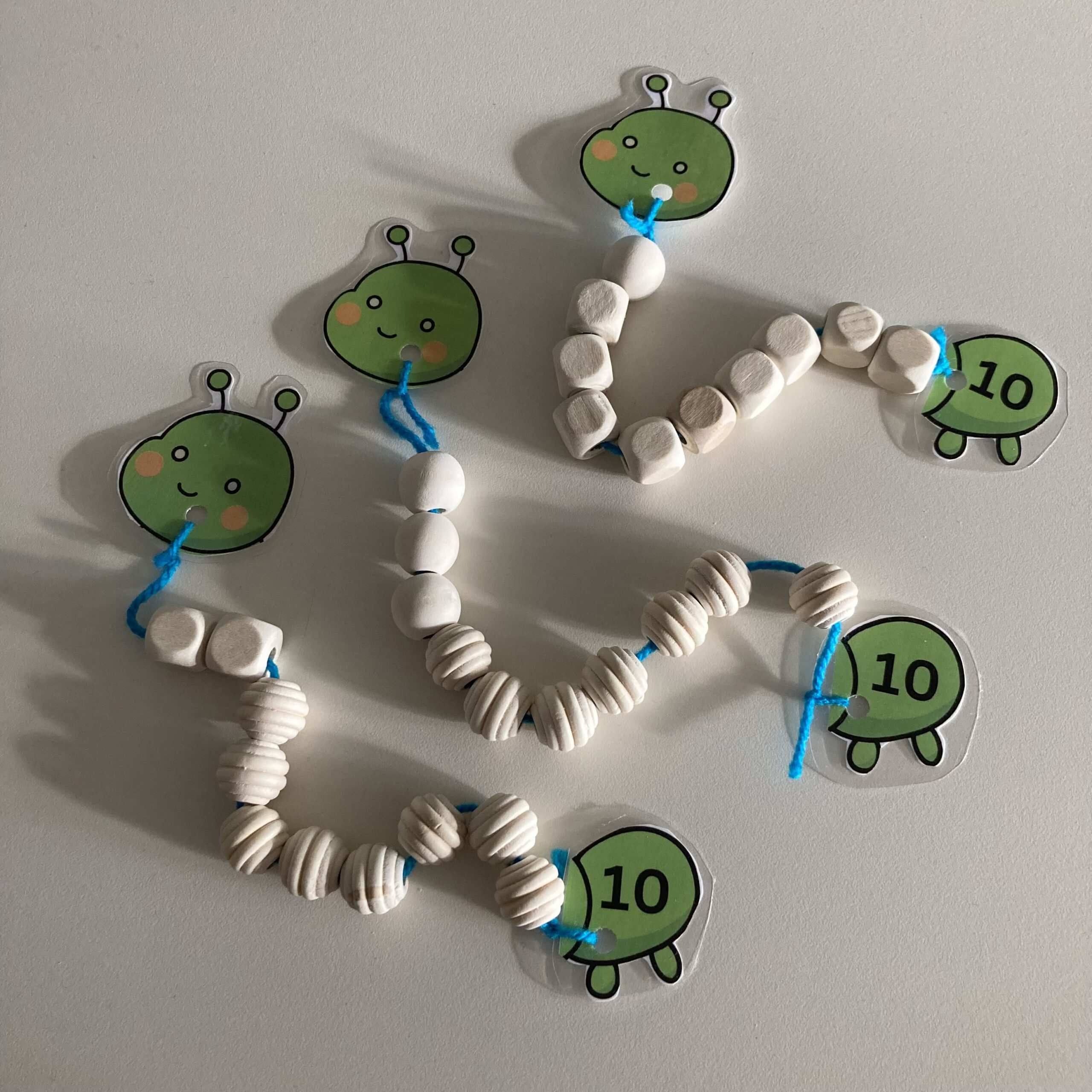 • Sorteer de kralen in de juiste splitsingen (6=2+4, 6=3+3 & 6=1+5)